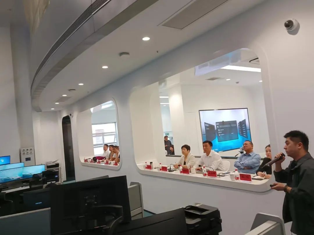 考察組一行首先參觀了交通指揮大廳,交通指揮中心相關(guān)負(fù)責(zé)人介紹了上海交通城運(yùn)系統(tǒng)的總體運(yùn)行情況,并對(duì)對(duì)外交通、市內(nèi)交通、道路交通、智能協(xié)同、數(shù)治監(jiān)管、交通保障、專題分析等七個(gè)版塊的數(shù)據(jù)信息及應(yīng)用功能進(jìn)行了詳細(xì)講解和展示。